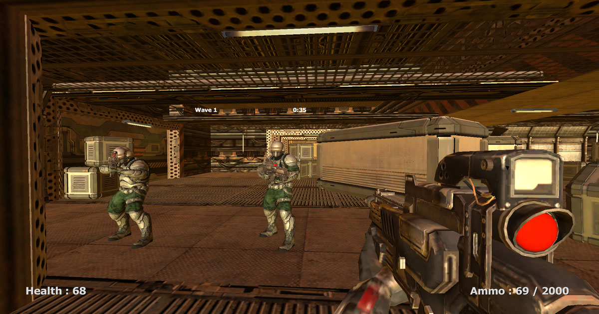 You are elite space marine and your mission is to infiltrate martian bio weapon research facility and use your powerful assault rifle to shoot thousands of security guards, try not overheating your weapon to keep your accuracy in order to survive all waves of enemies.